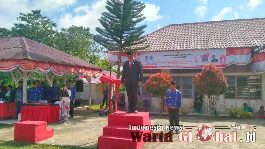 Pada peringatan HUT KEMRI Ke-80 Camat Moro'o Siusman Gulo S.Pd, MIP selaku pemimpin upacara. Dan selaku komandan Upacara, serda Irfan Waruwu dengan sigap berdiri tegap di lapangan Upacara.