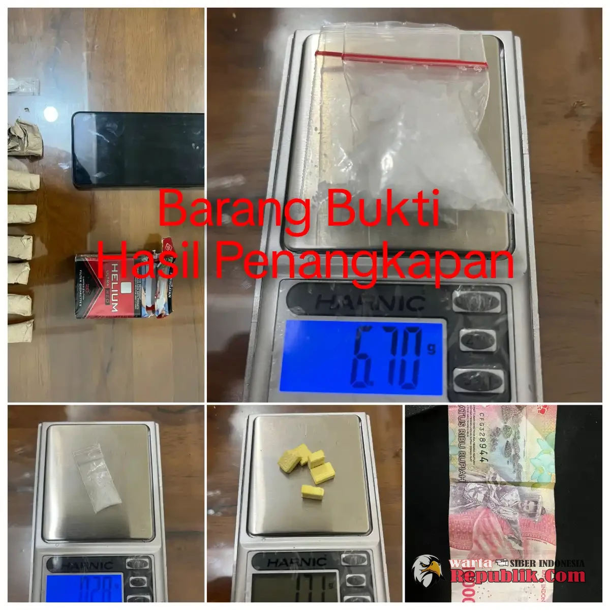 Dari tangan AM dan SRA, polisi menyita 1 paket sabu brutto 0,28 gram, 7 paket ganja kering brutto 12,44 gram, satu unit handphone, satu unit sepeda motor Honda Scoopy BK 4742 RAO, serta kotak rokok yang digunakan sebagai tempat penyimpanan narkotika.
