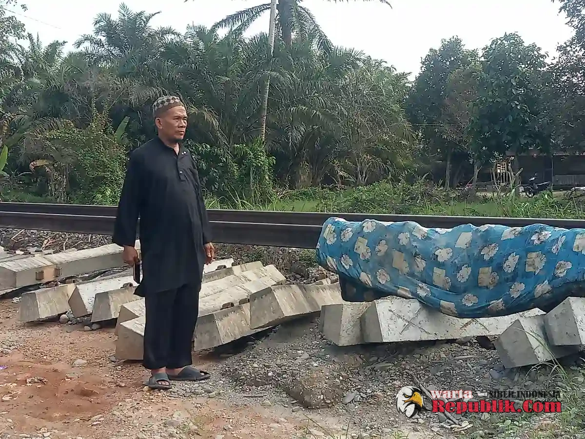 Benteng Jalur kereta api yang membentengi Dusun I Bangun Sari porak poranda di terjang arus banjir.