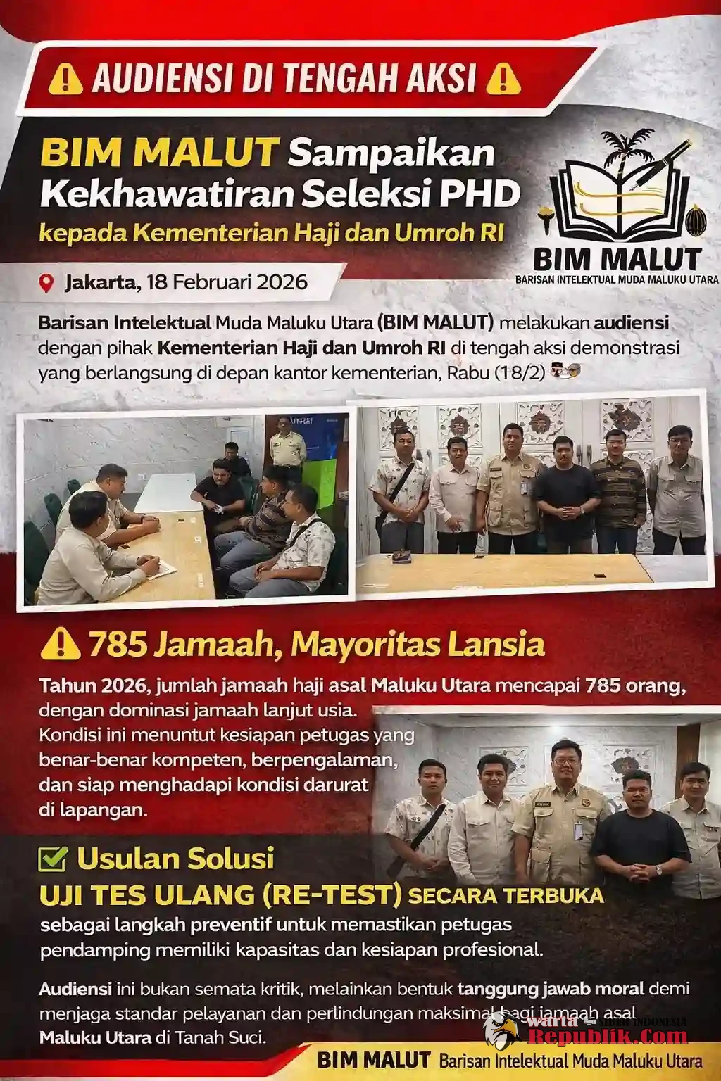 Dalam audiensi tersebut, BIM MALUT menegaskan bahwa persoalan seleksi bukan sekadar menyangkut administrasi, tetapi memiliki implikasi langsung terhadap kesiapan pelayanan di lapangan. Hal ini menjadi semakin krusial mengingat jumlah jamaah haji asal Maluku Utara tahun 2026 mencapai 785 orang, dengan komposisi yang didominasi oleh jamaah lanjut usia," tegas BIM Malut