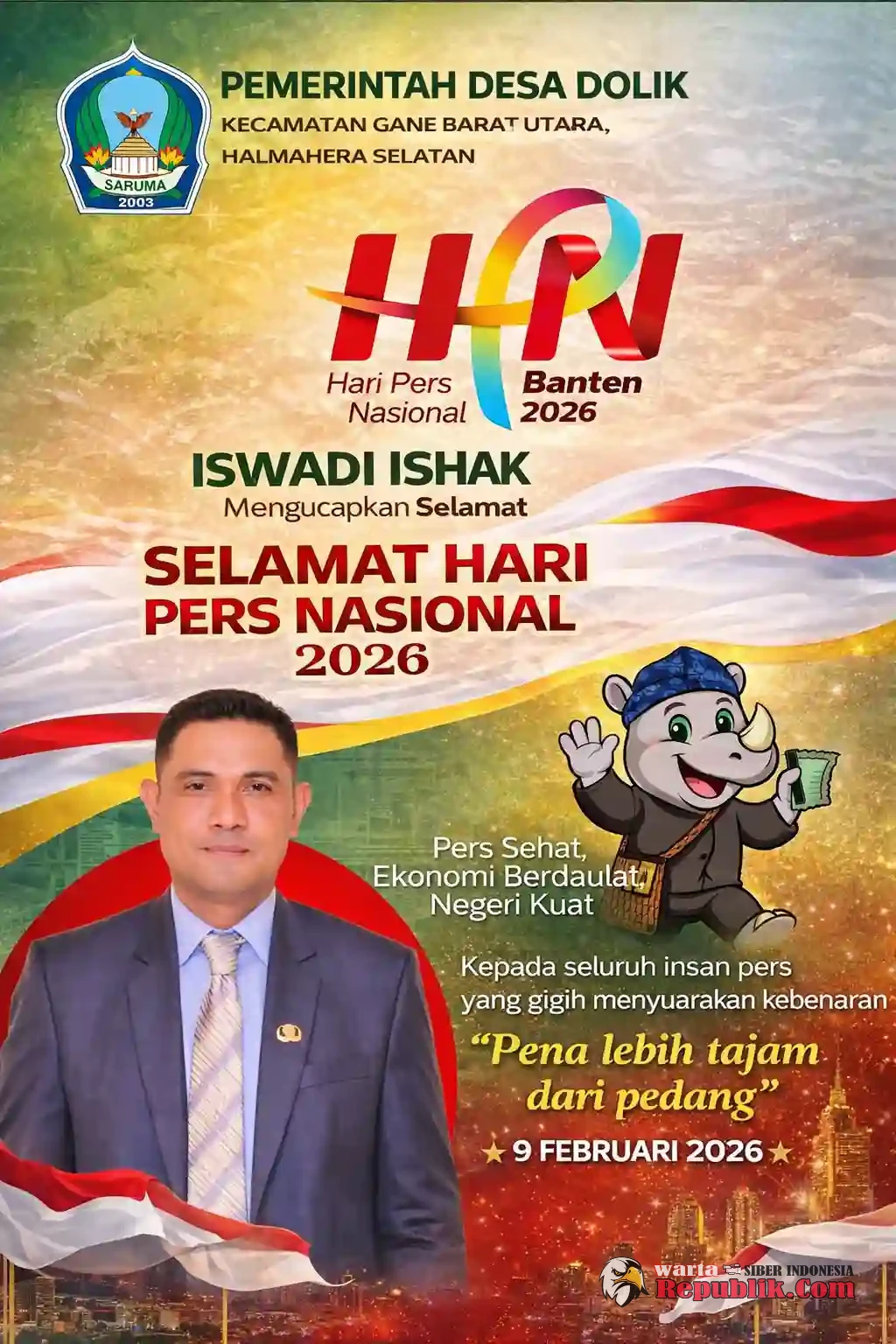 HAL-SEL, Wartarepublik.com - Pemerintah Desa Dolik, Kecamatan Gane Barat Utara, Halmahera Selatan, yang di wakili oleh kades Dolik Iswadi Ishak Mengucapkan Selamat Hari Nasional Pers. Pada Senin, (9/2/2026).