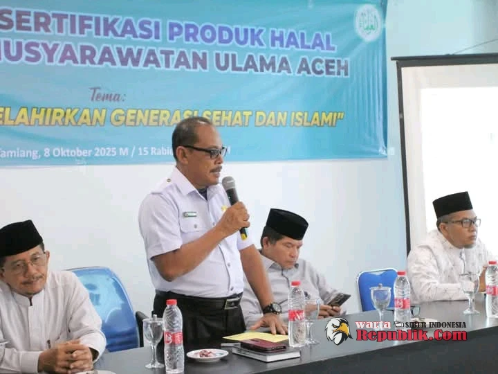 Pernyataan ini disampaikan Plt. Sekretaris Daerah Kabupaten Aceh Tamiang, Drs. Syuibun Anwar saat membuka Sosialisasi Sertifikasi Produk Halal Di Kabupaten Aceh Tamiang Tahun 2025, dengan tema “Produk Halal Melahirkan Generasi Sehat dan Islami” di Hotel Grand Arya, Karang Baru, Rabu, (8/10/25).