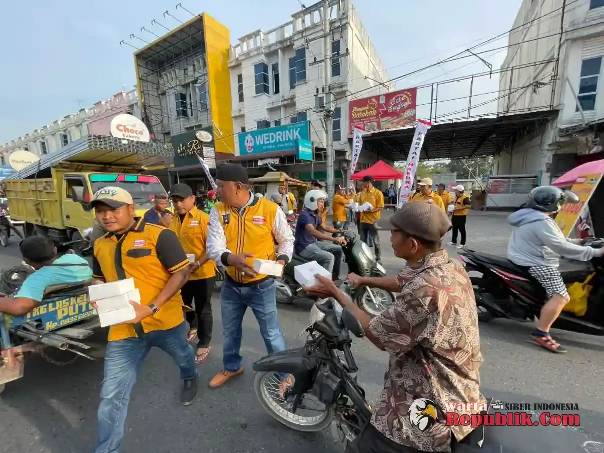 DELI SERDANG, wartarepublik.com - Dalam suasana penuh keberkahan di bulan suci Ramadhan, Ranting Partai Hanura Desa Bandar Klippa menggelar kegiatan Jum’at Berkah dengan membagikan 1000 paket takjil kepada masyarakat serta melaksanakan buka puasa bersama para kader. Kegiatan tersebut berlangsung di kawasan Ruko Jalan Pasar 7 Simpang Jodoh, Desa Bandar Klippa, Kecamatan Percut Sei Tuan, Kabupaten Deli Serdang, pada Jumat (6/3/2026) sore.
