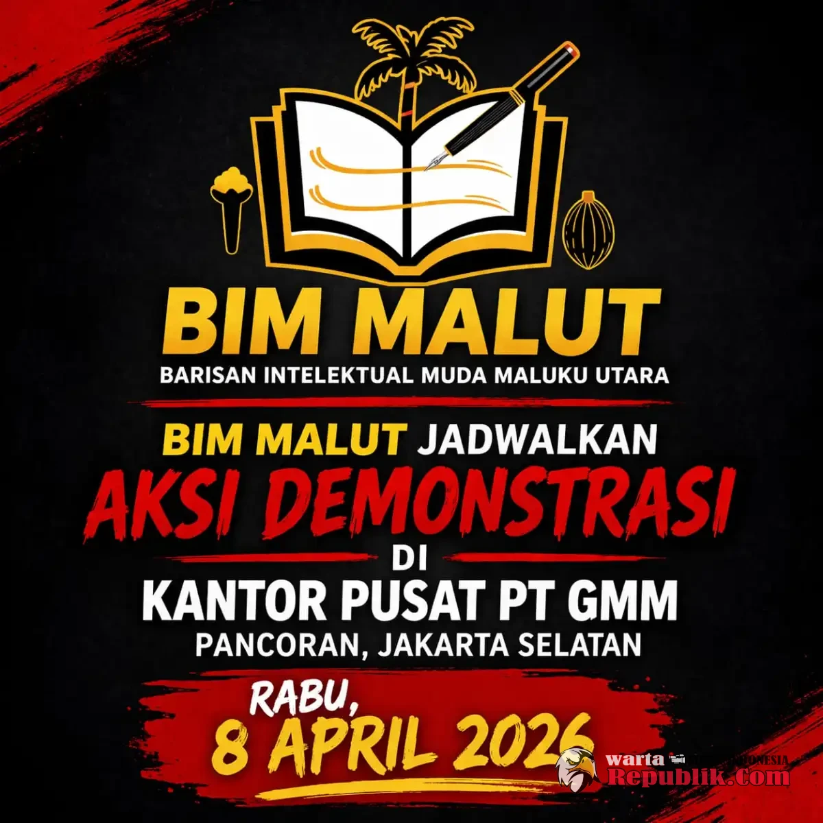 Jakarta, Wartarepublik.com – Barisan Intelektual Muda Maluku Utara (BIM Malut) menjadwalkan aksi demonstrasi pada Rabu, 8 April 2026 di kantor pusat PT GMM, Pancoran, Jakarta Selatan. Aksi ini merupakan bentuk protes atas dugaan ketidaktransparanan dalam pengelolaan program beasiswa perusahaan yang ditujukan bagi mahasiswa asal Kecamatan Gane Barat Selatan, Halmahera Selatan.