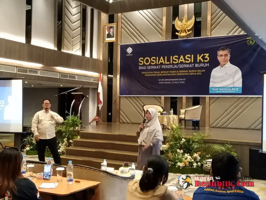 Sosialisasi K3 pada serikat pekerja serikat/ buruh dengan tema “Penguatan Peran serikat pekerja/serikat buruh Dalam Penerapan Keselamatan dan Kesehatan Kerja (K3)”