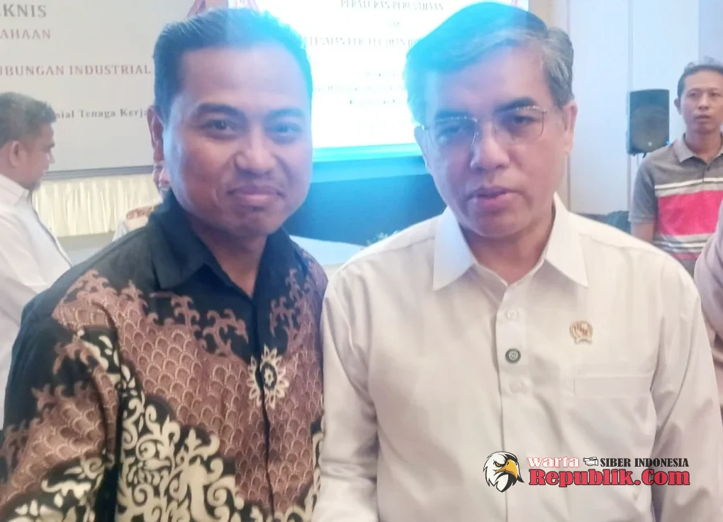 Menteri Ketenagakerjaan RI Prof Yassierli (baju putih) bersama Syahrul Idrus (Sekretaris PPMI MADANI)